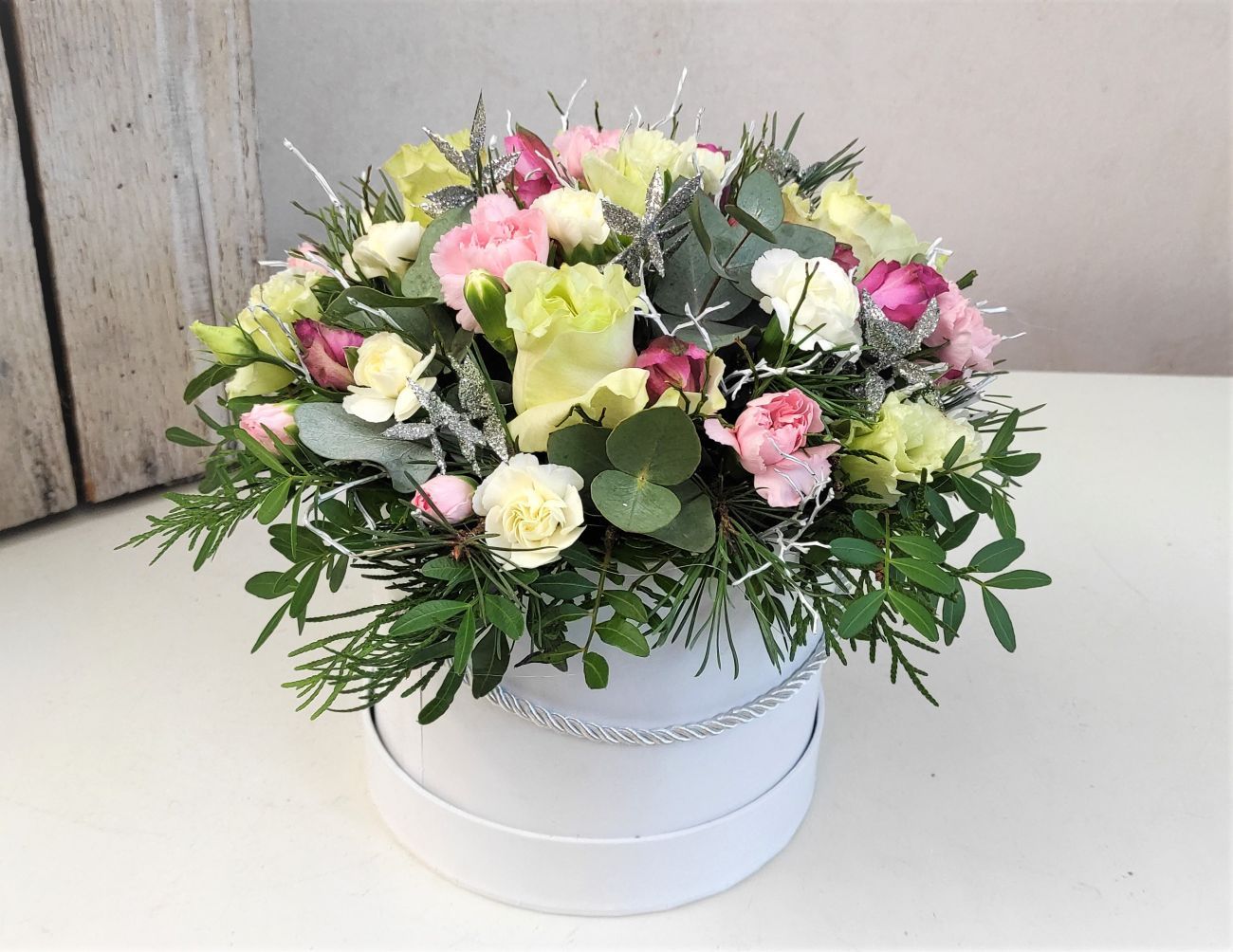 Květinová krabička, v zimních tónech, je úžasný dárek, který potěší a okouzlí. Jen jí postavíte na vhodné místo a můžete se kochat krásou čerstvých květin.