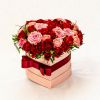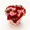 růže a trsové růže, můžou být použity minikarafiáty, nebo alstromerie, zeleň, krabička ve tvaru srdce. původ Holandsko