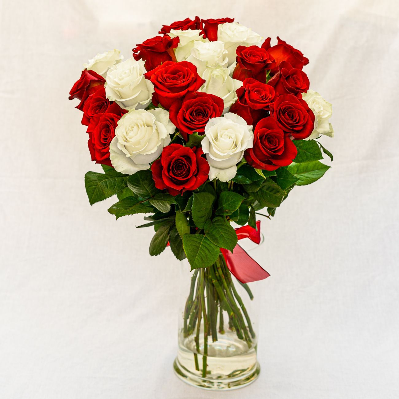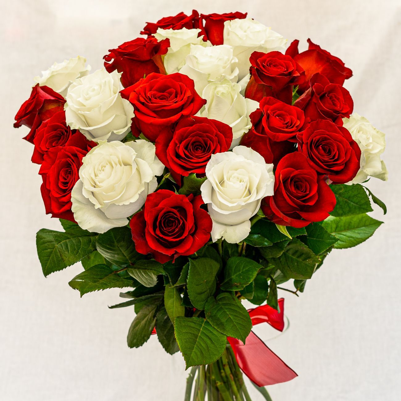 Doručování kytic Eshop (67) > Dárkové kytice (17) > Kytice bílých a rudých růží velká